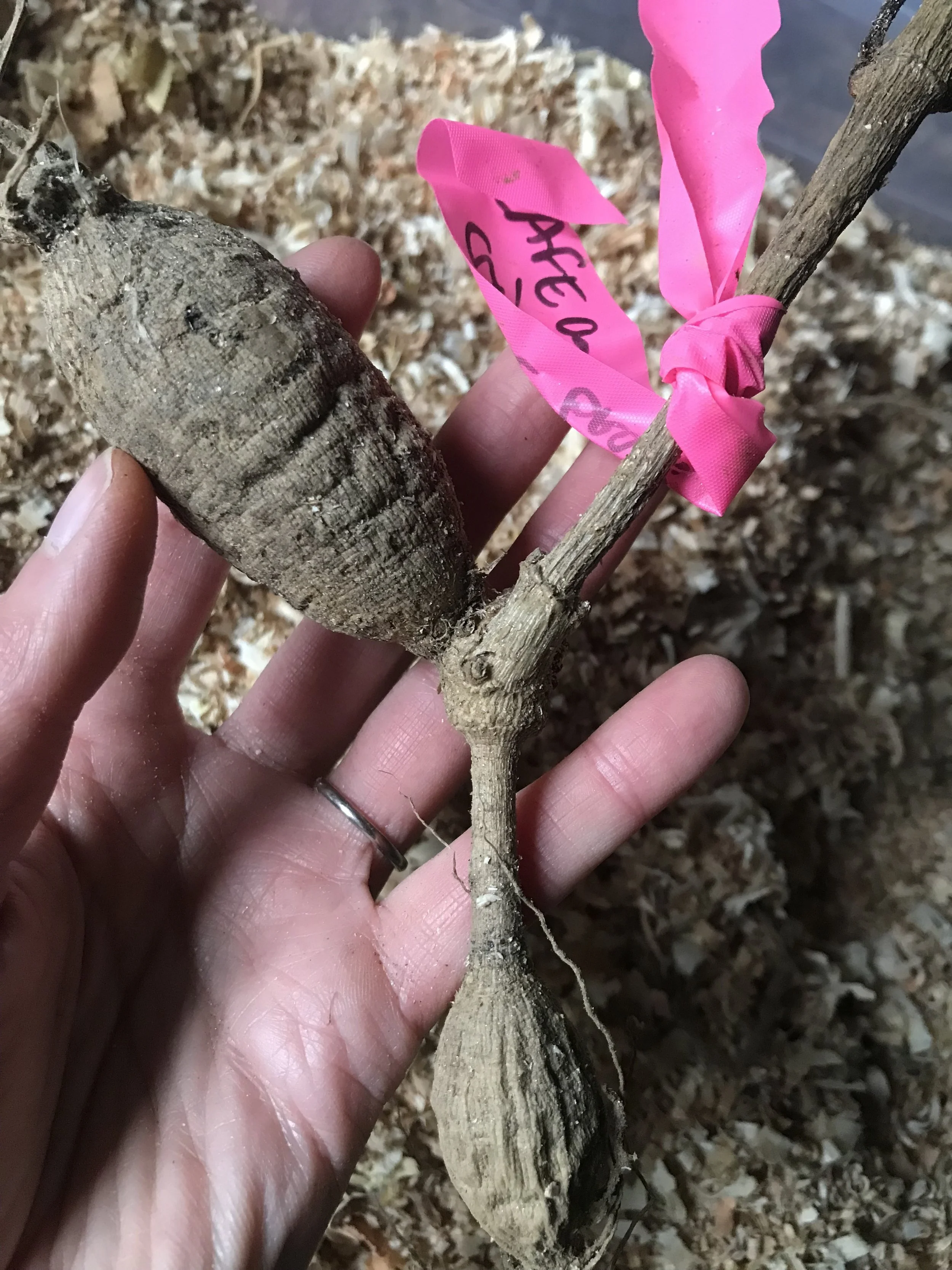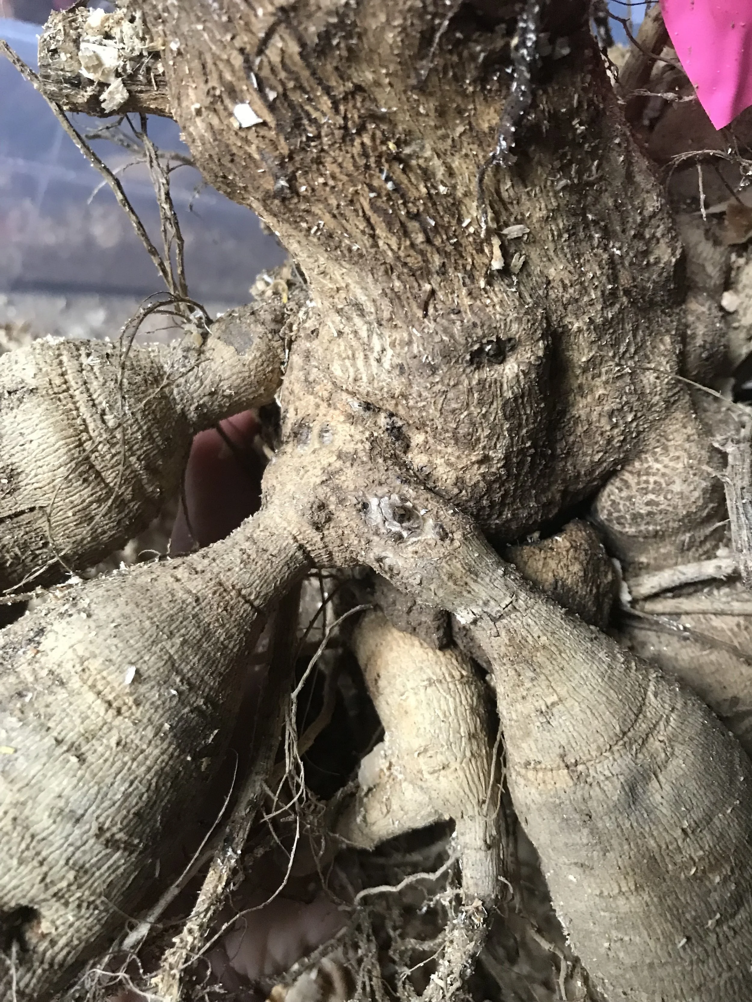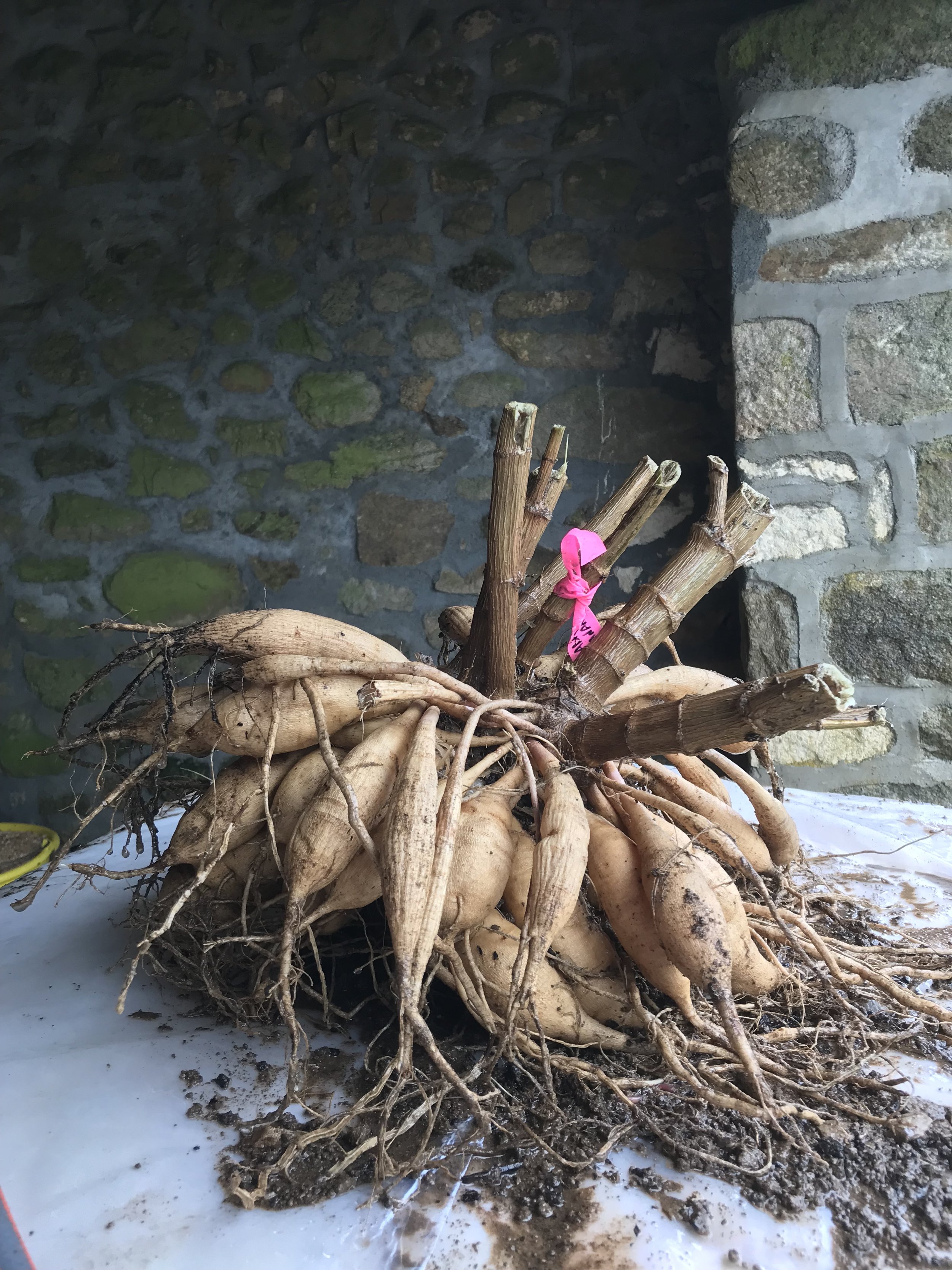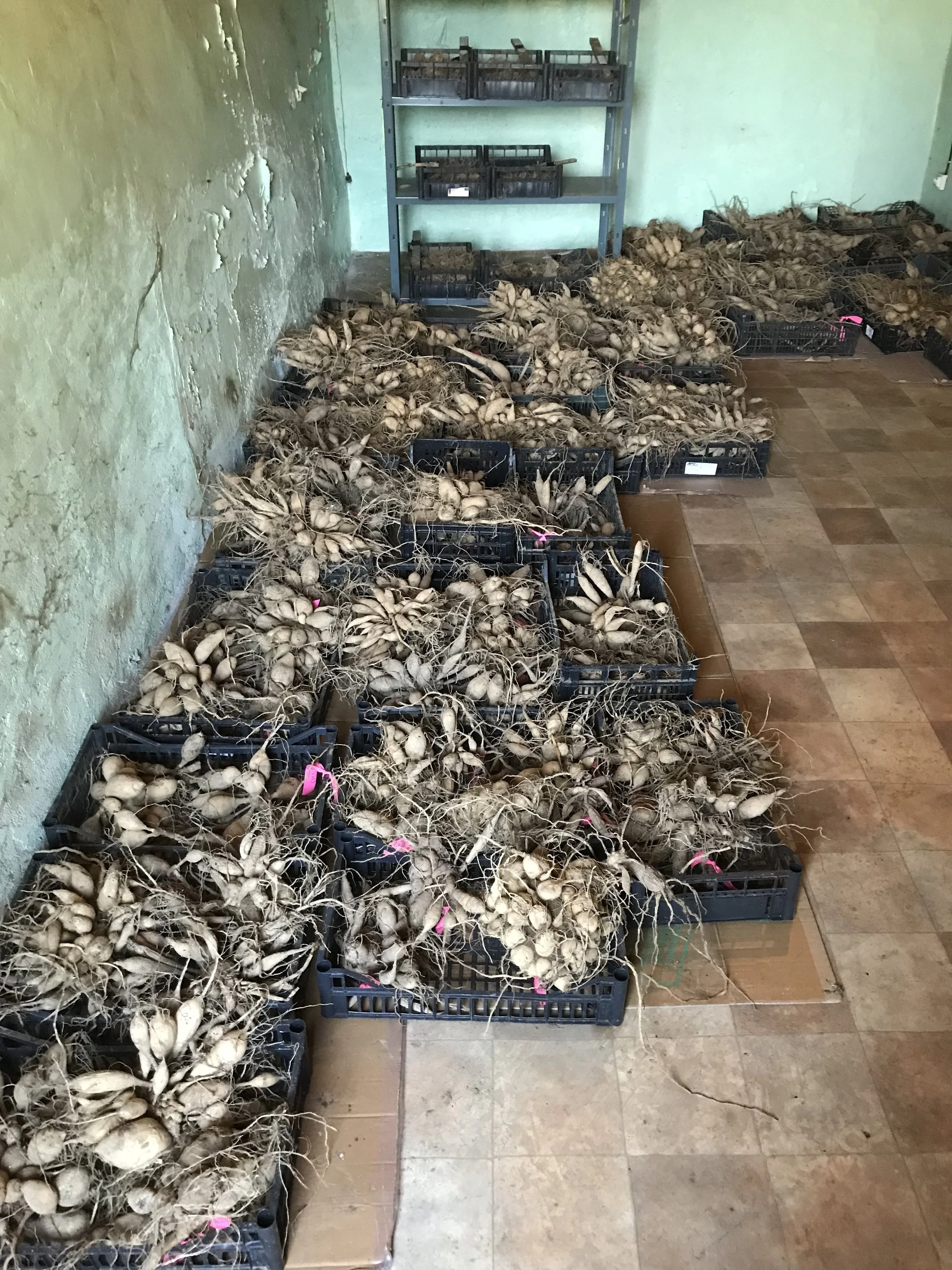 Ils ont ensuite été laissés une dizaine de jours pour sécher, dans le noir et au frais, la tige vers le bas afin que l’humidité de la tige ne vienne pas stagner au niveau des tubercules.