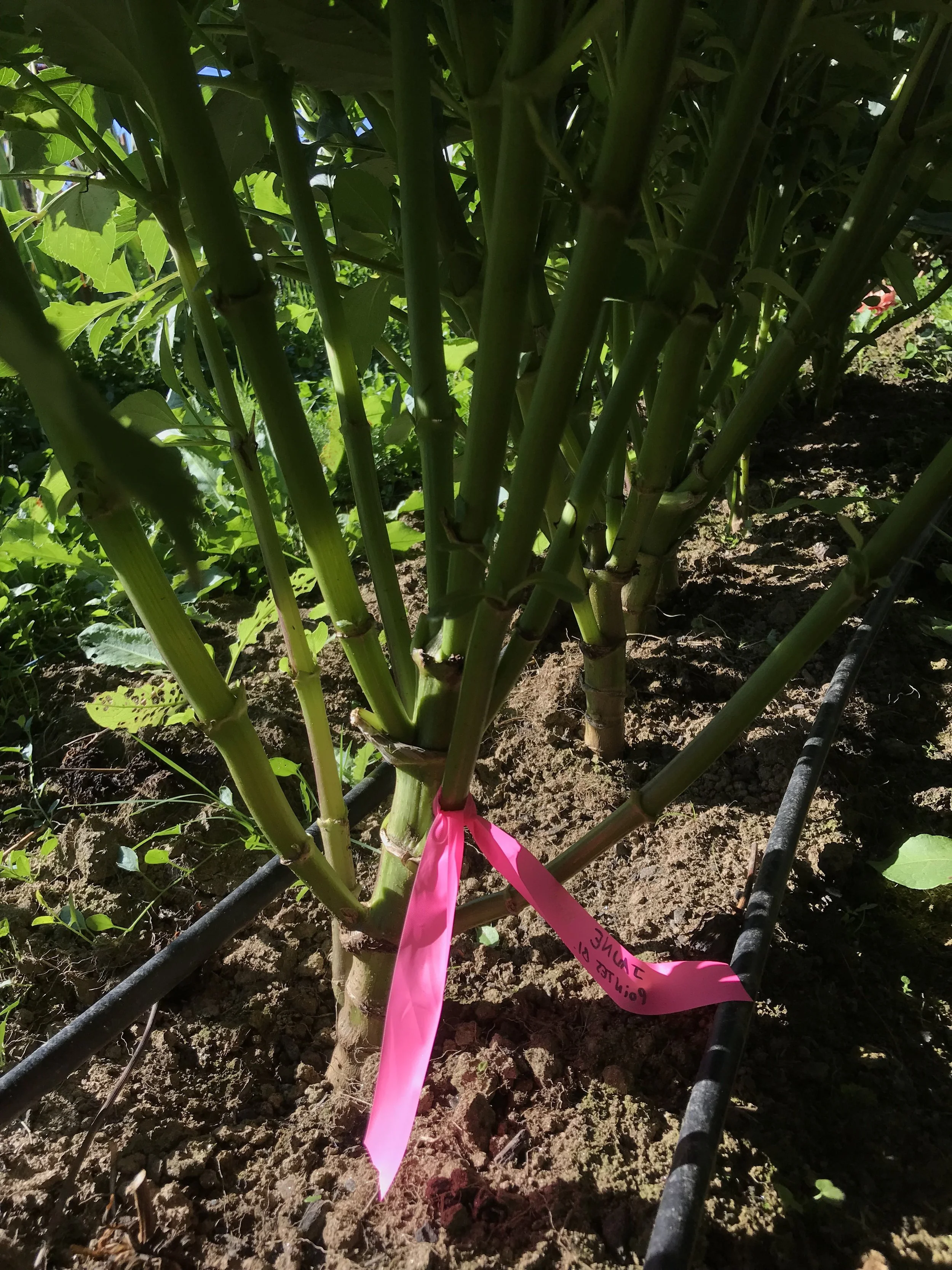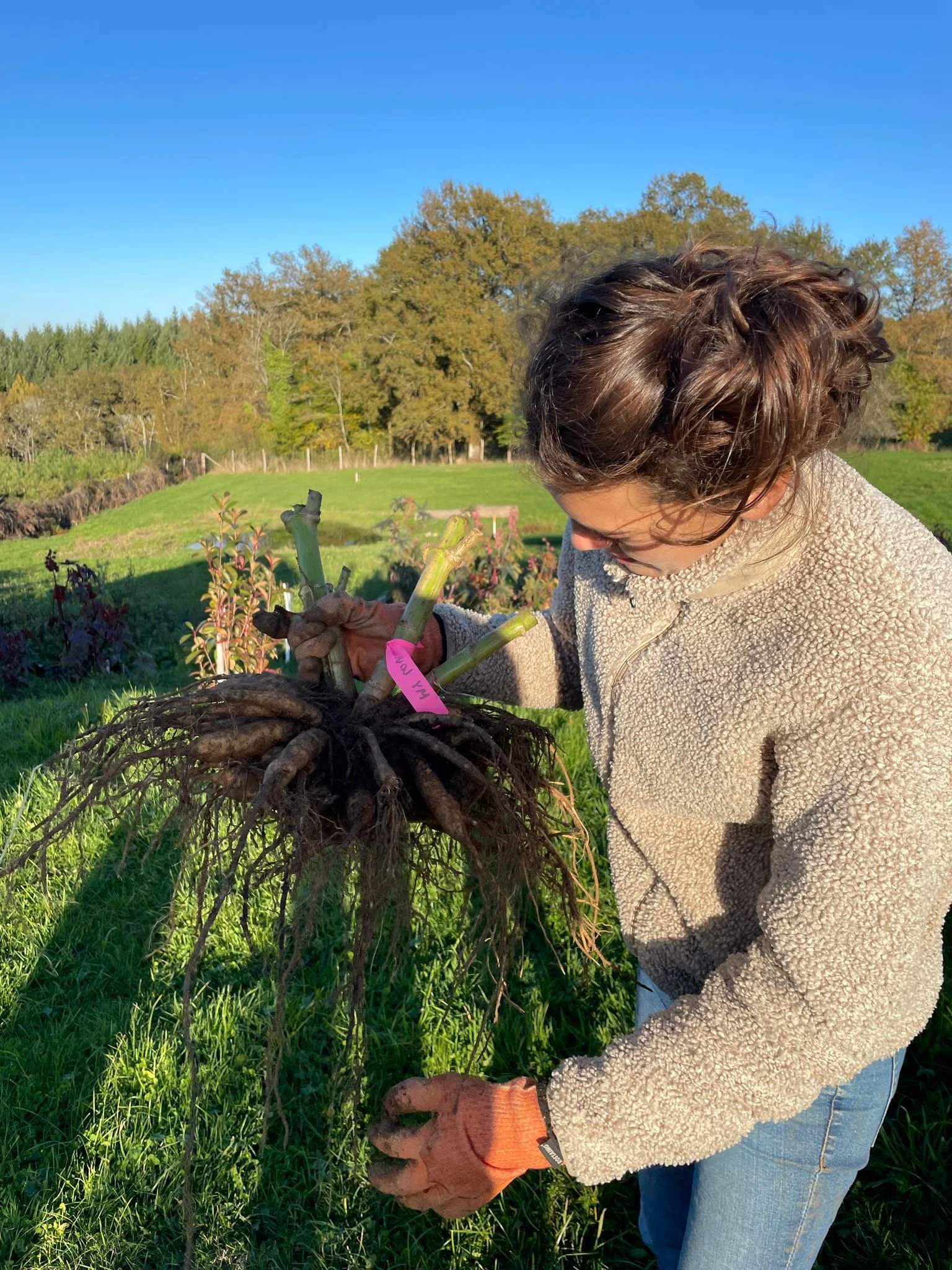 Dans la région où se trouve la ferme, il a de grandes chances qu’ils puissent passer l’hiver et revenir au printemps, mais je souhaitais affiner ma sélection après cette 1ere année, acheter des variétés qui supporteraient mieux les envois, diviser les pieds (certains ont bien plus que triplé de volume, et les plants atteignaient le faîtage du tunnel, à 3m), mais aussi et surtout les installer sur une parcelle différente de mon champ pour 2022.