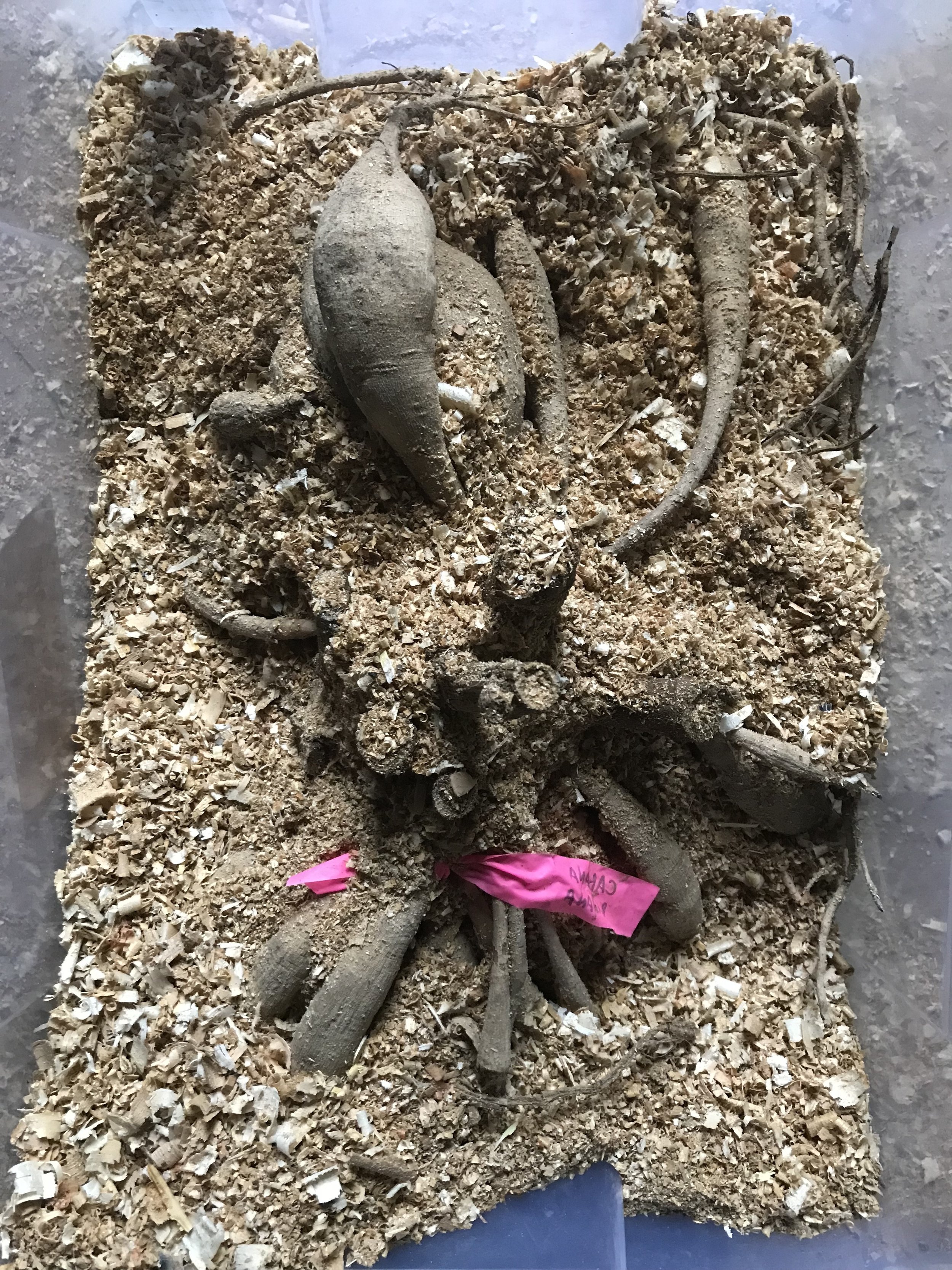 Le but de cette opération était d’enlever suffisamment de terre afin de pouvoir les stocker à l’intérieur de boites fermées, pour les protéger des rongeurs et du désèchement, sans que l’ensemble ne pèse trop lourd.