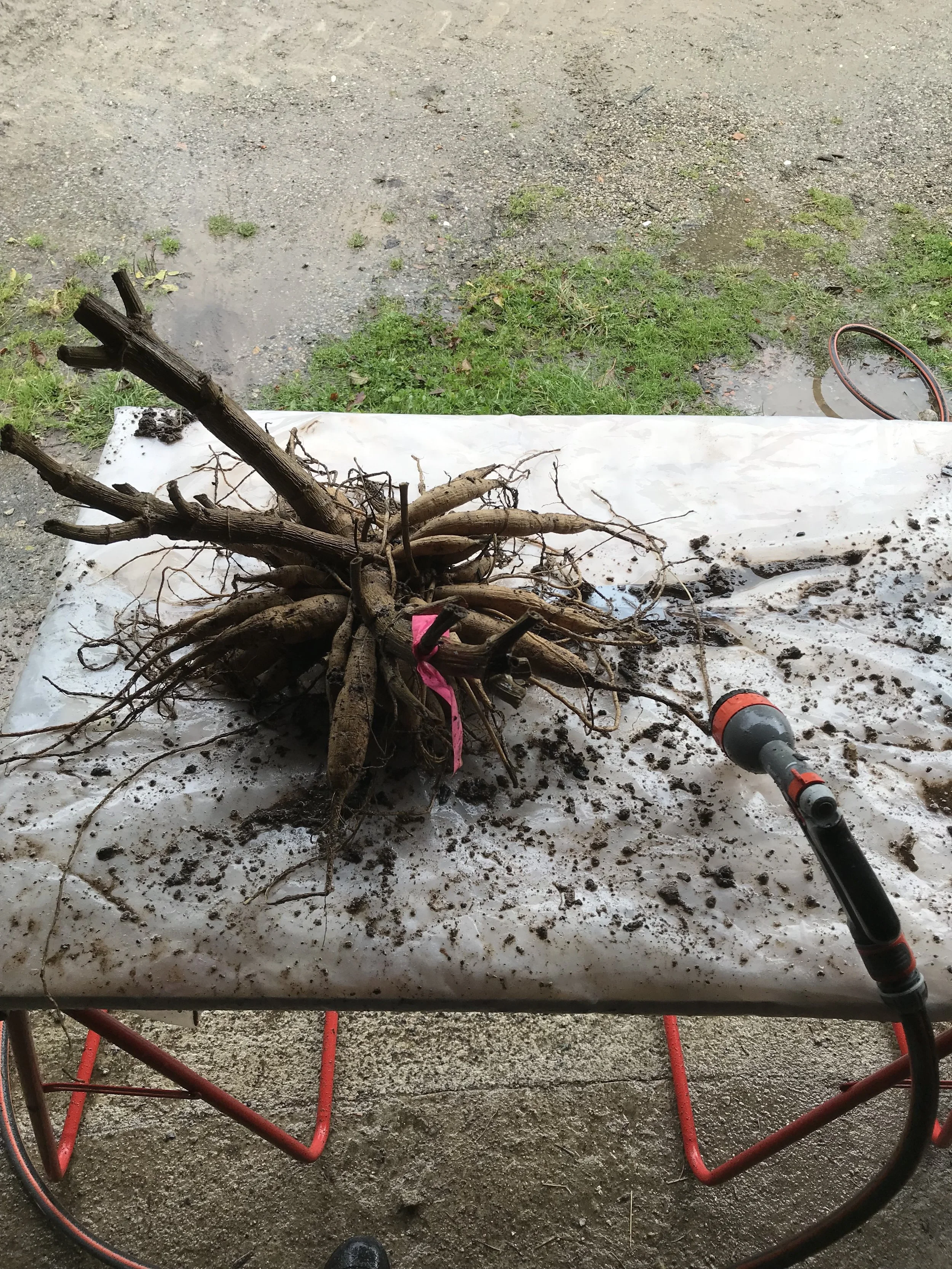 Les dahlias sont gélifs, ils ne peuvent pas supporter des températures en dessous de zéro trop longtemps; mais ça n’est pas que pour cette raison que je les ai sortis de terre.