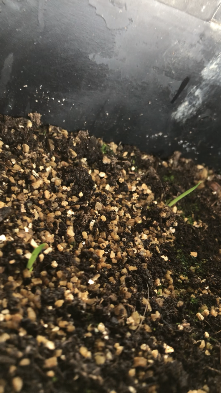 Cette semaine j'ai d'ailleurs eu la chance de voir germer trois des huit graines d'iris mises en godet fin Octobre. J'ai vraiment hâte de voir les fleurs parce que les pieds de départ étaient dans des teintes chaudes de moka/violacé, mais il faudra probablement que j'attende encore deux ou trois avant de les découvrir.