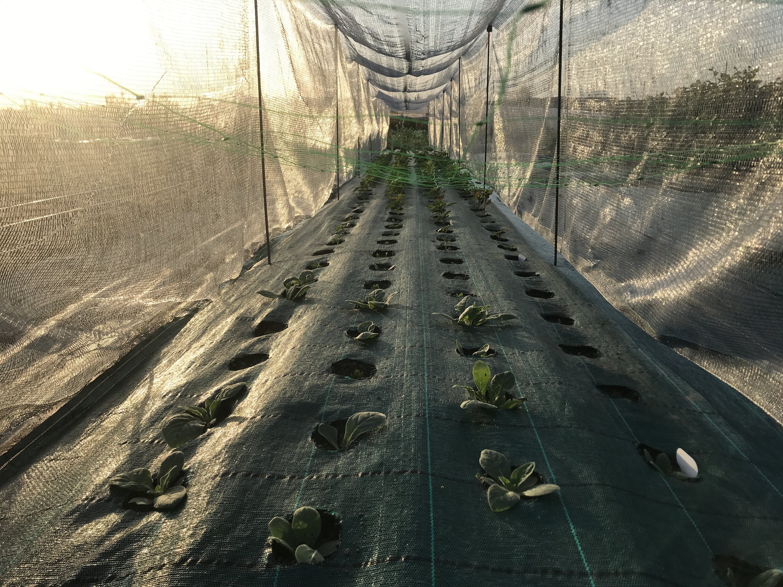 Les deux cumulés ont créé un cocktail très déstabilisant pour le champ. Les plants souffraient de sécheresse pour les parties aériennes (feuilles brulées, fleurs séchées en plein épanouissement) les insectes se sont développés à vive allure (la chaleur accélère les stades de renouvellement des populations) et le vent venait vérifier que mes filets étaient bien en place sur les cultures.